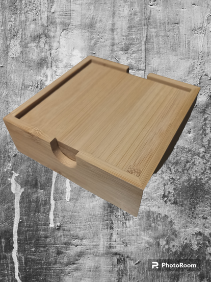 Ensemble de 4 sous-verres en bambou avec son racle de rangement. le bambou est un produit naturel, il peut y avoir des variations de couleur de taille par article.
